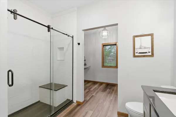 The open-concept main level is light-filled and fresh, featuring LVP flooring, fresh paint (2024), and a skylight (2024) that brightens the heart of the home. The modern kitchen and cozy fireplace were updated within the last four years, while both bathrooms were fully remodeled in 2024 for a sleek, move-in-ready feel.